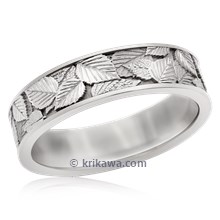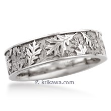 A beloved nature symbol, the maple leaf depicts the sweetness and wonder of love. For any autumn lover, the color change of maple leaves from green to fiery orange is a magical time. The Maple Leaf Wedding Band features layered maple leaves with various textures to give dynamic contrast to the band. Now you can carry that special time of year and beautiful symbolism with you forever!- Choose your metal in the dropdown below for pricing and colorizing