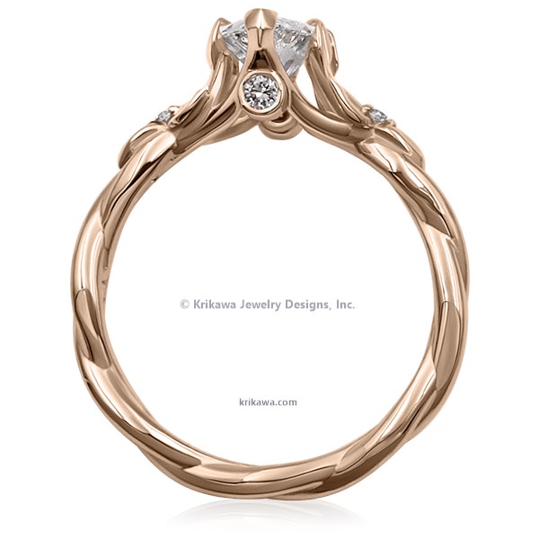 This nature-inspired design brings a marquise center stone into dainty, graceful motion. The Marquise Twisted Leaf Engagement Ring features leafy twists, balanced by a subtle twist in the band. The elongated silhouette enhances both the stone’s shape and the flow of the design, creating a dynamic yet refined composition.