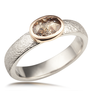 Modern Hammered Engagement Ring with Semi-Bezel