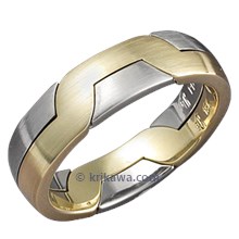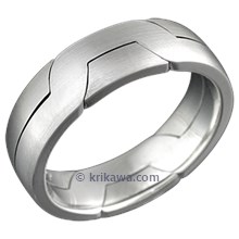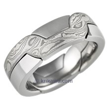 The Modern Puzzle Ring is similar to the Mokume Puzzle Ring.The two rings interlock for an unusual and modern take on a man's wedding ring. Shown here with a brush finish on both rings and 7mm wide.