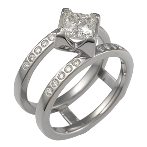 Modern Scaffolding Engagement Ring and Mokume Band