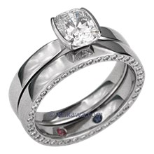 This contemporary engagement ring was custom made as a bridal set. (Pricing shown below is for engagement ring mounting only. Center Stone and matched Wedding Band are separately priced.)