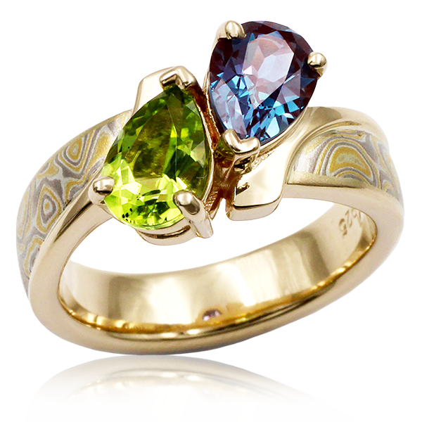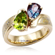 Enhance the narrative of your love story with our contemporary two-stone engagement ring. The textured raised twist, embracing the lifted duo of stones in a lofty prong setting, represents the intricacies of your intertwined lives. With customizable options, you can select stones that reflect your individuality.Shown in 14k yellow gold with pear-shaped alexandrite and aquamarine.