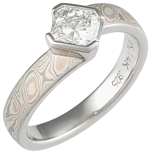 Mokume Angled Wave Engagement Ring with Yellow Diamond