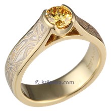 Mokume Cathedral Engagement Ring with Pink Sapphire