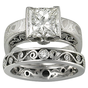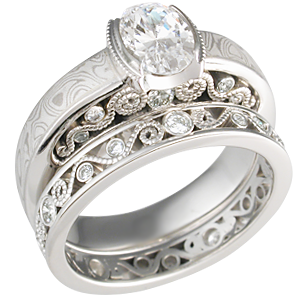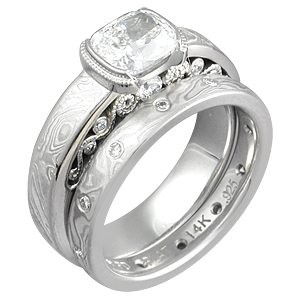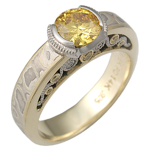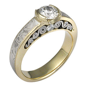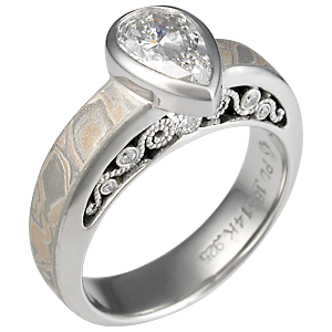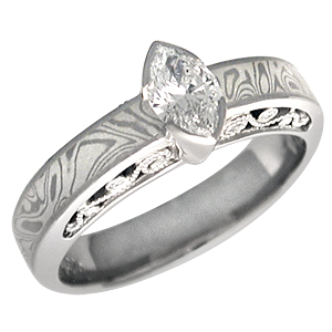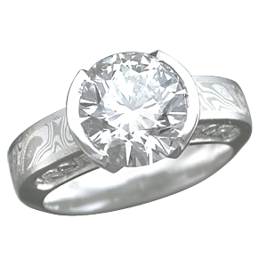 Customize this design with your combination of metal and mokume. Choose a white diamond or a colored stone as your peekaboo.