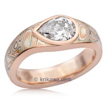 Mokume Droplet Solitaire Engagement Ring