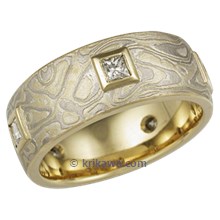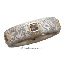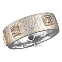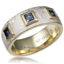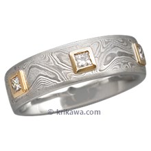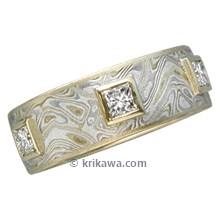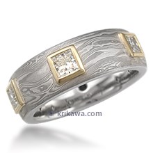 A men's wedding ring, made for a man, great for women as well. This is a regal ring with 6 bezel set princess cut diamonds evenly spaced around the band (0.60 ctw).
