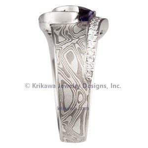 This ring takes its namesake from an elegant dancer's spin. Diamonds whirl around the bezel-set center gemstone, suggesting movement. Organic-looking mokume is inlaid around the band. 0.20 ctw accent stones.