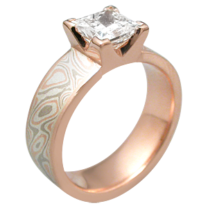 Mokume Solitaire Princess, 4 Cutout, with Plain Band