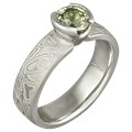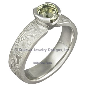 Mokume Solitaire Straight Tapered Engagement Ring with Green Diamond