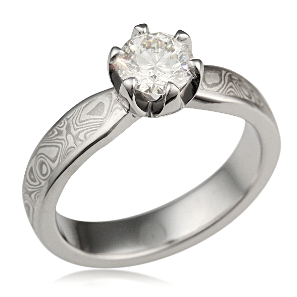 Mokume Solitaire Tapered Engagement Ring In Champagne Mokume