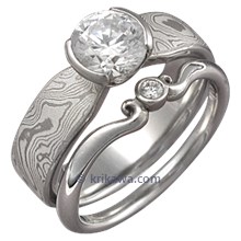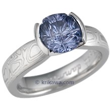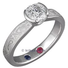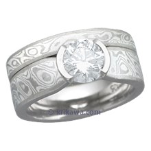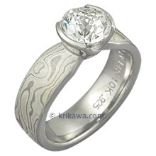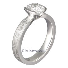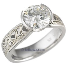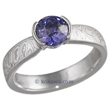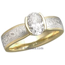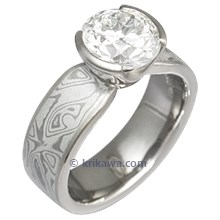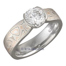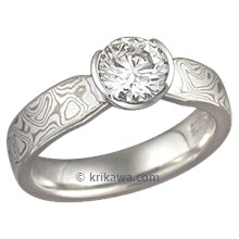 Mokume Solitaire Tapered Engagement Ring with Champagne