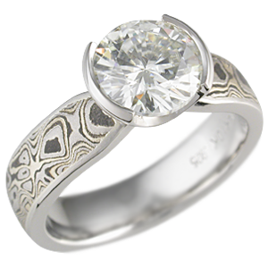 Mokume Solitaire Tapered with Low Profile Setting in Yellow Gold and Summer
