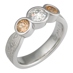 Mokume Three Stone Infinity Engagement Ring with Blue Diamond