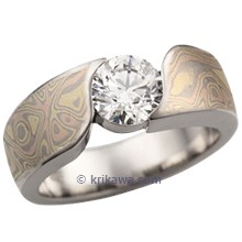 Mokume Wave Engagement Ring with Celestial Compass Yellow Sapphire
