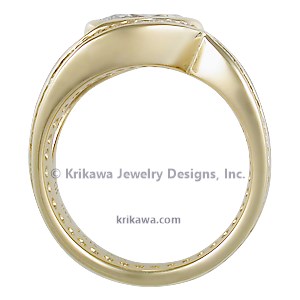 Mokume Wave Oval Diamond Crossing Engagement Ring