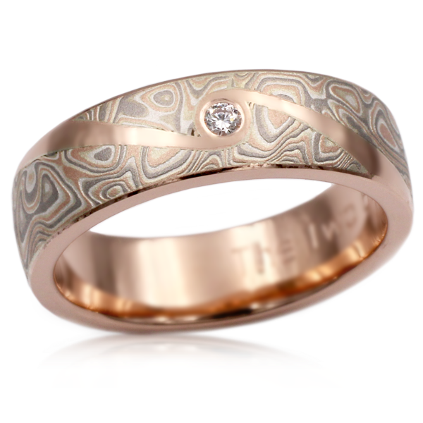 Mokume Wedding Band with Flush Swirl