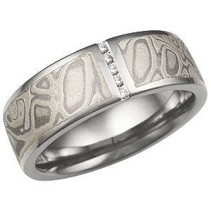Mokume Wedding Band with Vertical Diamond Channel