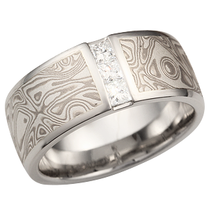 This wedding band is set with a 0.24 ctw diamond channel. 2.25 mm princess cut stones. 8 mm wide. To figure out what quantity and size of stones will fit a given width, use a space of .15mm between stones AND on the edges. Rail size per modeler to match channel.