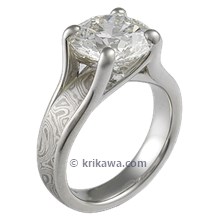 Say forever with our Mokume Wing Engagement Ring. This stunning mokume gane engagement ring features a delicate fusion of mokume and your favorite precious metal, creating a beautiful, textured pattern that flows seamlessly around the band. The sculptural setting elevates the design, with the band gently twisting to cradle a brilliant center stone.