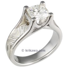 Say forever with our Mokume Wing Engagement Ring. This stunning mokume gane engagement ring features a delicate fusion of mokume and your favorite precious metal, creating a beautiful, textured pattern that flows seamlessly around the band. The sculptural setting elevates the design, with the band gently twisting to cradle a brilliant center stone.