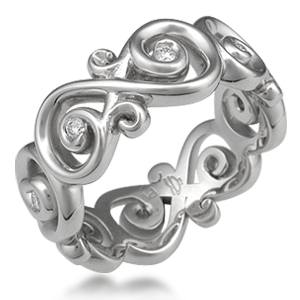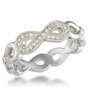 The Mountain Infinity Diamond Wedding Band brings together the strength of the earth and the eternal promise of love. A sculpted infinity symbol winds across a textured mountain range, its curves glittering with pavé-set diamonds that catch the light like snow on distant peaks. This design is a celebration of resilience, of growth, of two paths joined as one.
