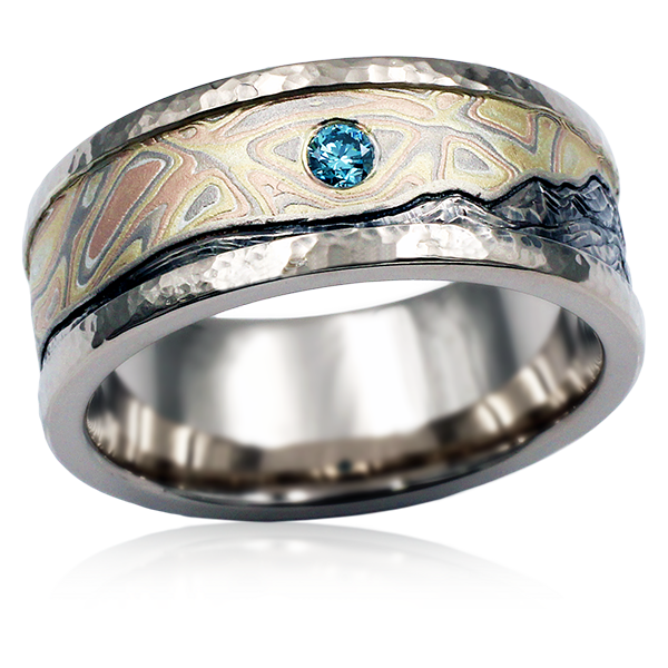 With flowing lines and three distinct metals woven into one seamless story, this ring becomes a personal emblem of your journey. Choose the mountains that speak to your soul, the metals that mirror your bond, and the stones that reflect your light. Each band is handcrafted to honor a love that is grounded, radiant, and forever unfolding.