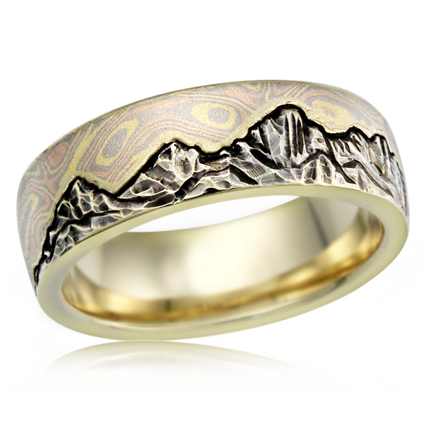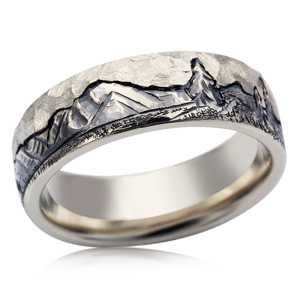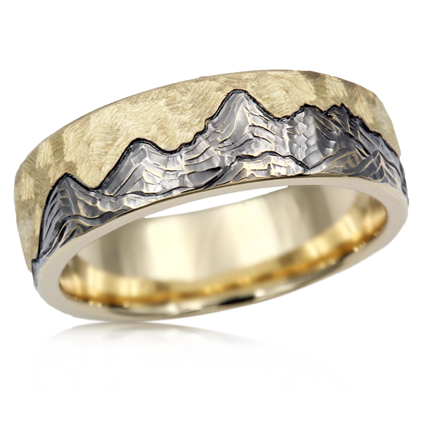 Mountain Machinist Wedding Band - Grand Teton Mountain Ring