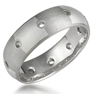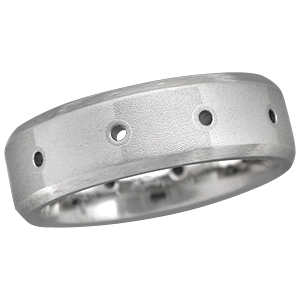 This custom ring is a narrow wedding band with diamonds in between the different metals. Rounded profile.