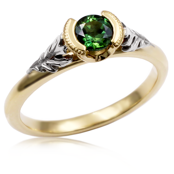 The Oak Leaf Cathedral Engagement Ring elevates natural form with architectural grace. A pair of carved oak leaves arches upward to meet your center stone, creating a strong yet elegant setting inspired by the vaulted lines of cathedral design. The leaves are sculpted with crisp edges and flowing curves, offering both texture and symbolism.