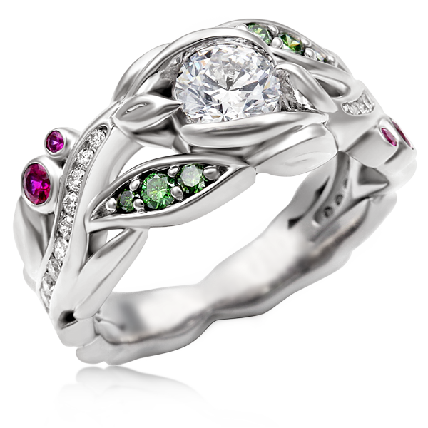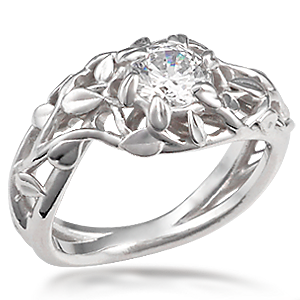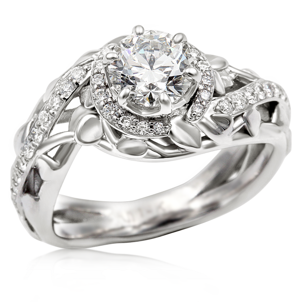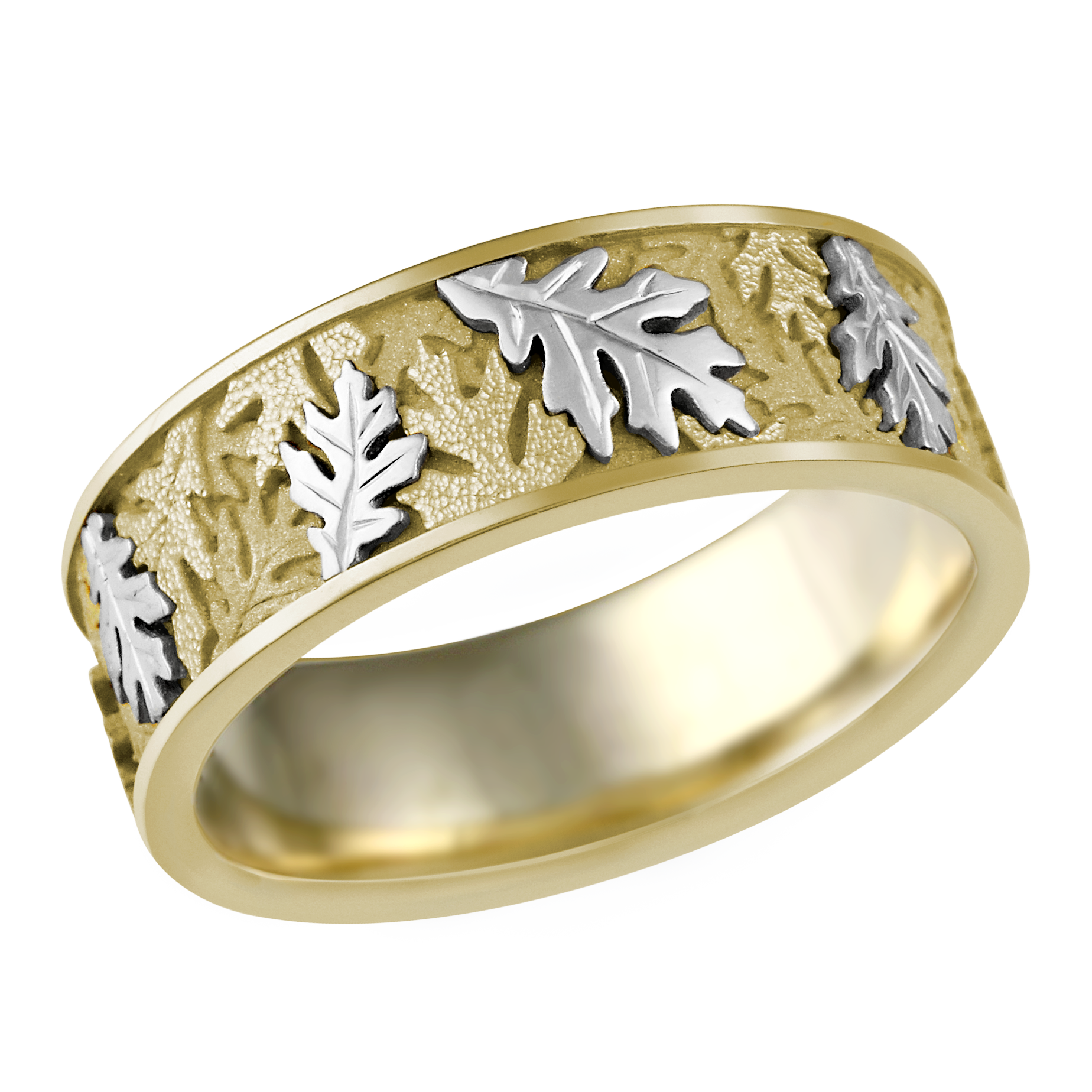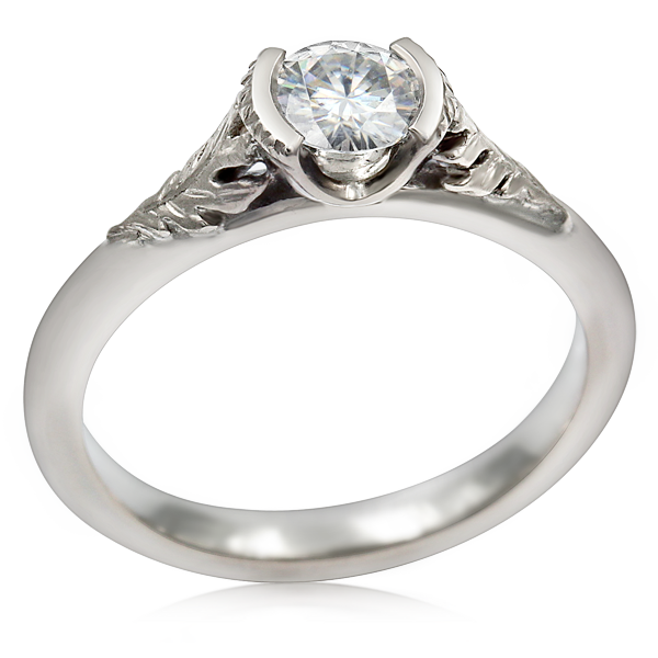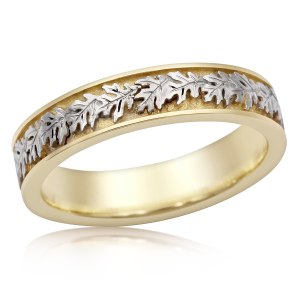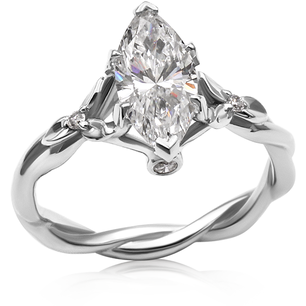 Bold and grounded, the Oak Leaf Engagement Ring draws from one of nature’s most enduring symbols. Hand-carved oak leaves reach up from the band, framing the center stone with strength and quiet movement. The sculpted foliage wraps the band with rich texture and natural flow, offering a tactile, grounded presence. Every detail is shaped to reflect resilience and quiet beauty.