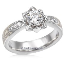 Celebrate the peace you found in your partner with this open lotus mandala design. In the mantras of Hinduism, the lotus flower is a symbol of fertility, prosperity, and enlightenment. Each tapered petal cradles a precious stone, resting upon it like fresh dew drops. The petals curve upwards as they meet the cherished jewel, mounted by delicate prongs. A twisting band, embellished with pave stones, swirls across your finger. Shown in 14k yellow gold.The band is 2.5mm width at the palm.