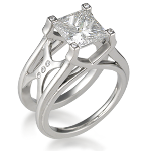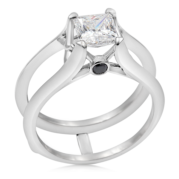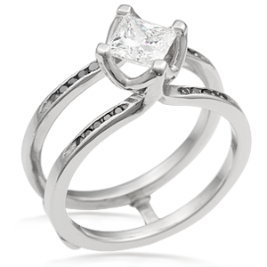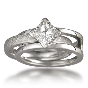 This black diamond scaffolding engagement ring is fitted with a White mokume wedding band.*Pricing shown below is for scaffolding ring mounting only. Center Stone and insert Mokume Band are separately priced.*