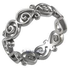 This unique wedding band is based on a floral infinity motif. Curly infinity symbols representing your everlasting love encircle this ring.