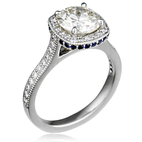 A romantic and timeless design, this cushion-cut halo exudes brilliance. Inspired by royalty, this nostalgic design references a time of radiance and elegance. A round-brilliant-cut diamond rests atop a cushion halo. Sitting upon its throne, the cathedral-mounted halo embraces precious pave-laid stones. The richness continues along the pave band. Customize this engagement ring to celebrate your personal legacy. Imagine the possibilities with your choice of precious stones and metal tones.Shown in platinum with a 1.5ct diamond.