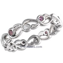This custom wedding band was set with pink sapphires. 0.18 ctw. Palladium. Size 7.