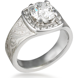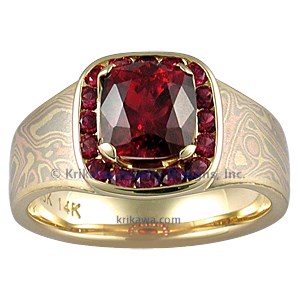 This gorgeous ring was handcrafted with Trigold mokume in a yellow gold liner.