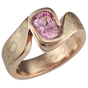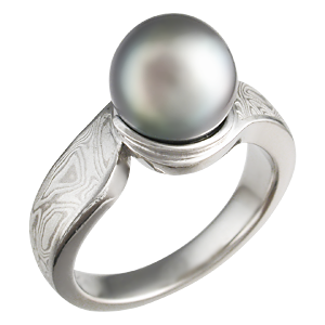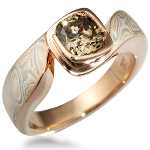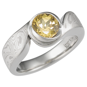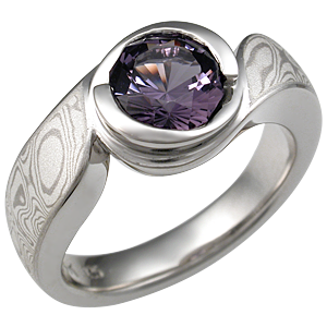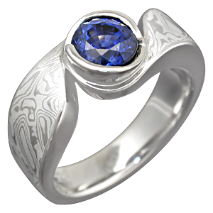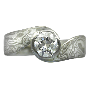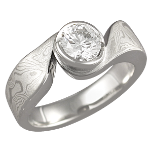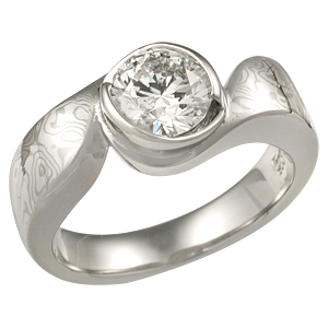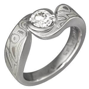 Platinum Mokume Solitaire Swirl Engagement Ring