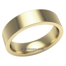 This rose gold wedding band is flat in shape and 6 mm wide.