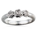 The Rose Trio Wedding Band is a petite garden of romance sculpted in precious metal. Three hand-carved roses bloom along the top of the band, their delicate petals eternally unfurling in a graceful arc. This floral wedding band offers both comfort and charm.