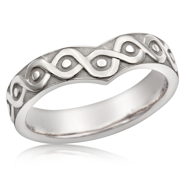 A simple, rustic knot wraps around this symbolic wedding band. The knots are raised above the matte recessed background and have a high-polish finish for added contrast. This band is an artistic representation of your eternal love and connection.