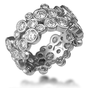 The Scattered Bezel Diamond Engagement Ring is a celebration of playful luxury and personal meaning. Diamonds of varying sizes dance across the band in bezel settings, creating a composition that feels spontaneous and utterly captivating. No two versions of this ring are exactly alike, making it a perfect reflection of the one-of-a-kind love it’s meant to represent.