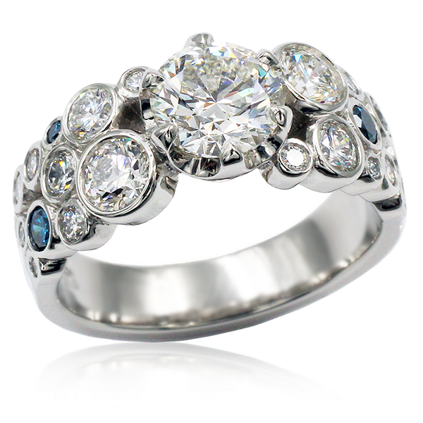 Whether you choose bright white diamonds, colorful sapphires, or a mix of both, this ring comes to life in the details you define. With a center stone or without, it’s a radiant symbol of joy, creativity, and individuality — handcrafted just for you.