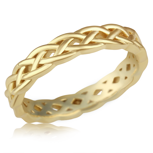The symbolic Celtic knot continuously wraps around the band with negative spaces for an intricate, airy look.