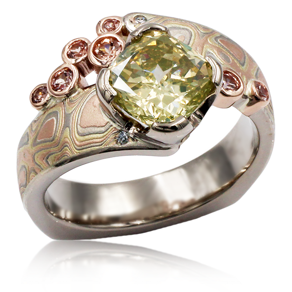 Seafoam Mokume Engagement Ring