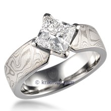 Seafoam Mokume Engagement Ring In Autumn With Yellow Diamond