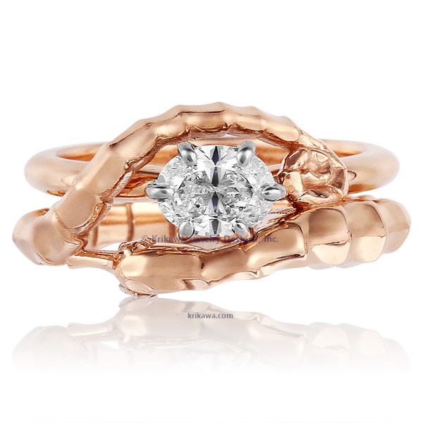 Shown in 14k rose gold with a 0.70 carat oval diamond center.