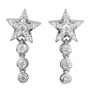 This stellar engagement ring features a half-carat diamond embellished with natural diamonds. A dynamic ring with strands of bead set diamonds. The halo is shaped like a star encrusted with diamonds and a beautiful center stone. Perfect for that person who makes you feel like you got your wish from a shooting star.Shown in platinum with round diamonds and natural colored diamonds.