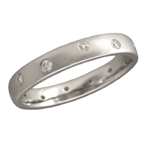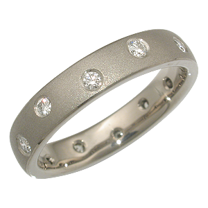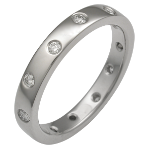 This wedding ring was designed so that the diamonds do not encircle the band. Please inquire within for such variations.